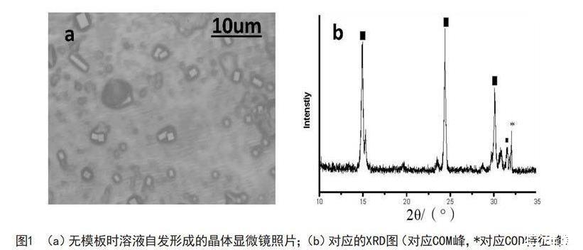 采用XRD表征草酸鈣的成分;收集在十八胺LB膜上的晶體和溶液自發(fā)生成的晶體,用金相顯微鏡表征。