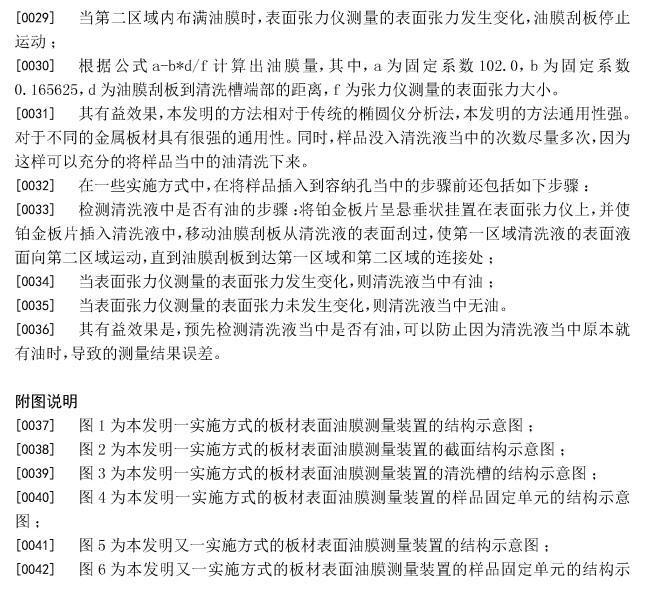 [0022]本發明還提供了一種板材表面油膜測量的方法,其特征在于,包括如下步驟: