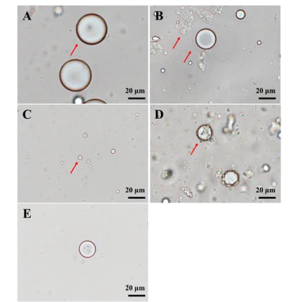 通過顯微鏡觀察發(fā)現(xiàn)未添加橘皮素(TAN)和β-環(huán)糊精(β-CD)的乳液液滴粒徑較大,且界面處未產(chǎn)生液晶。脂肪酶存在下,脂質消化過程中產(chǎn)生層狀液晶。當該液晶與脂肪酶相互作用時會經(jīng)歷擠壓機制,導致液晶外殼破裂,液滴中未水解的油被排出。分別含有TAN、β-CD和TAN/β-CD的乳液均處于第一產(chǎn)物層狀液晶相的形成階段,在相同的消化時間內消化行為相似。結果表明,TAN和β-CD都具有阻礙液晶相形成的能力,且TAN比β-CD的抑制能力更強。且TAN和β-CD的共存導致液滴表面液晶相的形成顯著減少。
