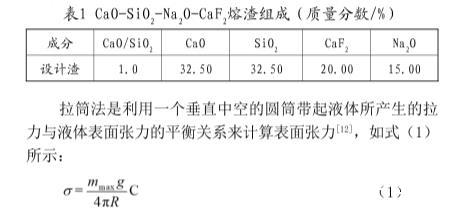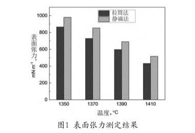 拉筒法和靜滴法測定連鑄結晶器保護渣表面張力(一)