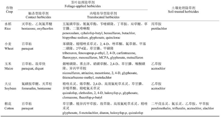農田草害的發生嚴重影響了農業生產和發展,使用除草劑進行化學防治是目前最省時省力和防除效果最好的除草方法。其中,莖葉處理除草劑因其具有不受土壤環境影響、按草施藥、靈活和選擇性高等優點,應用范圍更廣。然而,莖葉處理除草劑在噴霧施藥過程中由于受到雜草葉片界面特性的影響,常出現藥液迸濺、滾落、難以滲透等現象,導致除草劑用量增大,雜草產生抗性,并出現藥害和環境殘留等諸多問題。使用合適的噴霧助劑是解決以上問題的重要策略。考慮到除草劑的使用需要結合雜草性質,并與噴霧助劑一起使用,了解各自的作用方式對指導草害的防治具有重要意義。
