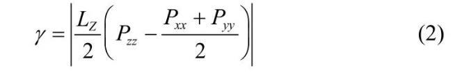 對于表面活性劑來說降低界面張力的能力是考察其性能好壞的重要指標(biāo)之一,下面通過考察不同體系的界面張力和界面寬度來進一步說明OPES的界面性能,如表1所示。對于界面張力可以利用式(2)來計算,其中LZ為盒子高度;Pxx、Pyy、Pzz分別為x、y、z方向的壓力。