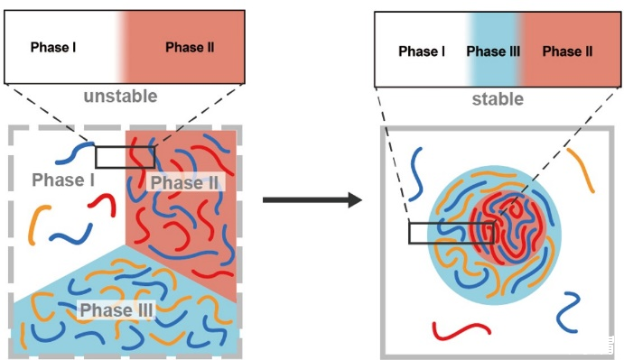 帶相反電荷的聚電解質鏈在溶液中會發生液-液相分離,形成富含高分子的濃相(凝聚相)和幾乎不含高分子的稀相。這類復合凝聚現象與原始細胞模型、無膜細胞器的形成及生物分子的有序組裝結構密切相關,對理解生命體系具有重要意義。在液-液相分離過程中,界面張力是一個極為重要的物理性質,它決定了復合凝聚物的許多基本特征,對多個領域的應用有著決定性影響。