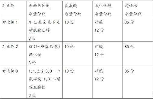 表2:多晶硅蝕刻液制備的對(duì)比例1-對(duì)比例3