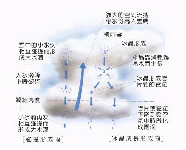 以水滴的形式從高空云中降落到地面的水,稱之為「雨」。形成「雨」的物理過程,可以分為三個步驟: