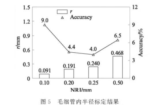 (1)毛細管內半徑標定值略小于其生產標號,前者比后者小4.0%——9.0%;對于生產標號為0.10mm和0.20mm的毛細管差分組合,內半徑標定后表面張力測試精度提升10.9%——20.7%.