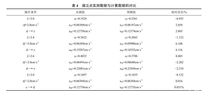 表4液泛點實測數(shù)據(jù)與計算數(shù)據(jù)的對比
