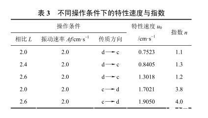 表3不同操作條件下的特性速度與指數(shù)