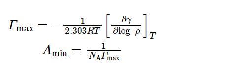通過鉑環(huán)法在室溫下進(jìn)行表面張力測(cè)定,參考GB/T 5549-2010。繪制出表面張力-濃度對(duì)數(shù)(γ-lg c)曲線。使用公式(1)和(2)對(duì)飽和吸附量(Гmax)和單個(gè)分子占據(jù)最小表面積(Amin)進(jìn)行計(jì)算。