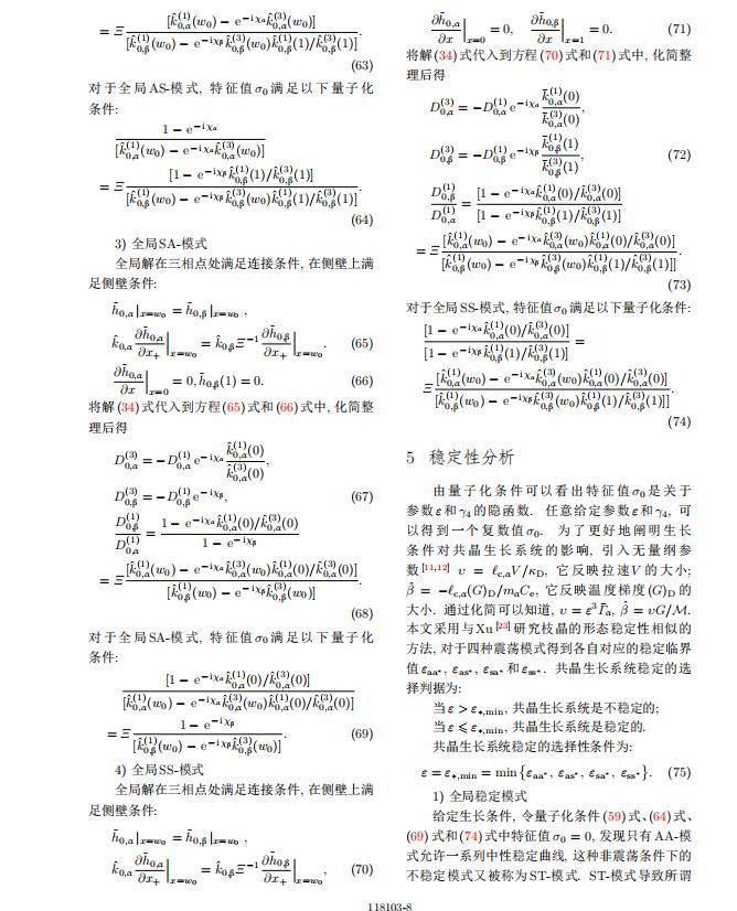 為考察共晶生長形態穩定性,利用共晶生長的定常解作為基態進行穩定性分析.在初始時刻t=0時對基態解做一小擾動,并將在t>0以后形成的非定常解分解成兩個部分: