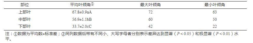 葉傾角對霧滴沉積的作用強于葉面結構,在噴施農藥時應優先考慮。表1表明,成熟期煙株上部葉傾角大多集中在60°~70°之間;中部葉傾角居中,集中在50°~60°之間;下部葉傾角較小,集中在20°~40°之間。