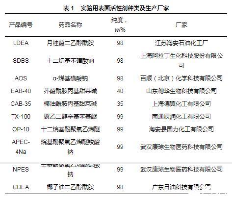 基于陰離子?非離子型表面活性劑復配最佳強化潤濕高效驅油體系——實驗部分