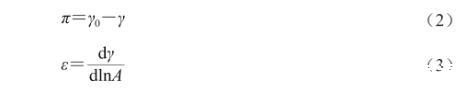 通過CCD相機高速采集油滴輪廓信息,通過Laplace方程計算得到界面張力,通過監測油滴表面積發生變化時界面張力的變化值,計算得到界面彈性模量,按公式(2)、(3)計算: