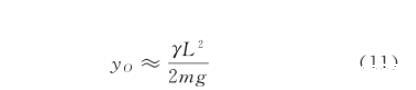 根據(jù)式(10),可以給出流道中點(diǎn)O在有皂膜流動(dòng)時(shí)相對(duì)于無皂膜流動(dòng)時(shí)(即尼龍繩為豎直狀態(tài)時(shí))的位移: