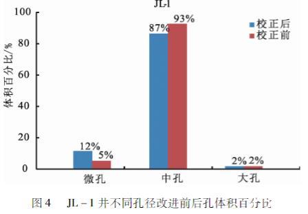 同樣應用參數校正前后的Washburn方程對松遼盆地青山口組JL-1、JL-3、SL1-9、SL1-13井的泥頁巖樣品的數據處理、對比發現——參數校正后的方程對于半徑為4 nm以下的孔有較大的影響,對于半徑為4 nm以上的孔基本上沒有影響(圖3)。