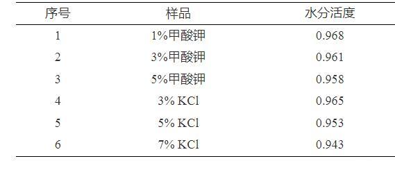 通過海陸過渡相頁巖巖心浸泡實驗與線性膨脹實驗,可以得出甲酸鉀、疏水抑制劑對于該區(qū)塊儲層頁巖具有良好的抑制效果。其作用原理為:①疏水抑制劑可以在黏土表面吸附后形成一層膠束膜,一定程度上阻止水分子進入黏土晶層,減少水分滲透,從而抑制黏土礦物的水化膨脹,同時,疏水抑制劑能夠改善頁巖的潤濕性和濾液的表面張力,弱化毛細管力,阻止濾液進入地層內部;②甲酸鉀則是通過改變水的化學性質和與黏土礦物的相互作用來影響?zhàn)ね恋乃再|,加入甲酸鉀后會降低水的活度(表2),產生一定的滲透壓差,有利于阻止壓力傳遞到泥頁巖中,從而抑制頁巖水化膨脹、分散;③KCl可以抑制黏土礦物的水化膨脹,部分是因為它能夠影響?zhàn)ね恋V物顆粒表面的電荷分布和相互作用。當黏土礦物水化時,表面的電荷特性會發(fā)生變化,導致顆粒之間的斥力增加,從而引起膨脹。KCl的存在可以中和一部分表面電荷,降低顆粒間的斥力,減緩水化膨脹的速率。