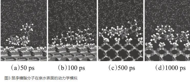 圖3鼠李糖脂分子在親水表面的動力學模擬