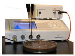 表面張力儀在具體應用中,由于分析天平對于實驗環境條件有一定要求,如需要通用源、有一定重量而不易攜帶等,因而,對于一部分便攜式要求的表面張力測量應用,稱重原理的表面張力儀通常不被便攜要求的用戶所采購。這部分表面張力儀潛在用戶的選擇在很長時間內選購了便攜式表面張力儀。這種便攜式表面張力儀通常采用的原理為泡壓法或最大氣泡法原理(Max bubble Pressure method)。最大氣泡法表面張力儀通常分為兩種設計,一種是直接設計出一種手持式的鼓泡裝置,同時在該裝置中設計了壓力傳感器,通過讀取壓力傳感器的值,轉換為相應的表面張力值;另一種是采用如稱重法表面張力儀一樣的臺式機設計,應用于分析動態表面張力,以分析表面活性劑的動態吸附。事實上,后者的意義已經偏離了便攜式表面張力儀應用的目標,因而不在本文的討論范圍。