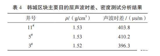 表4韓城區(qū)塊主要目的層聲波時(shí)差、密度測試分析結(jié)果