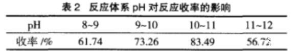 表2反應(yīng)體系pH對(duì)反應(yīng)收率的影響