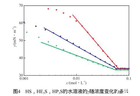 表1 HS,HE3S,HP3S的表面活性參數(shù)
