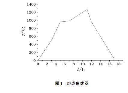 把磨好的釉料制成2cm×2cm×3cm正四棱柱試樣,置于窯門洞口內,借助于高溫顯微鏡可連續觀察其在加熱過程中的全部變化。本次實驗采用還原氣氛進行燒制,實驗最高燒成溫度為1270℃,氧化和還原氣氛轉換溫度為980℃,圖1為燒成曲線圖。