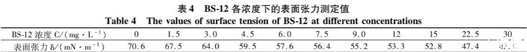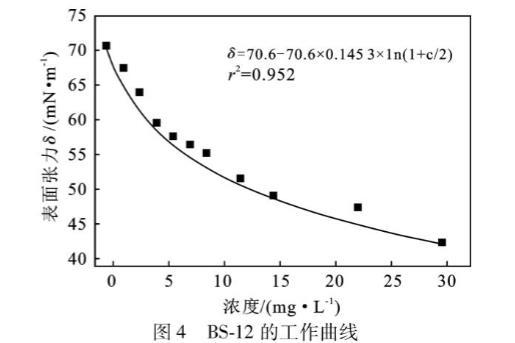 十二烷基二甲基甜菜堿(BS-12)是一種兩性表面活性劑,性能溫和,在產品配方中起性能調節和降低刺激性的作用,可用作纖維柔軟劑、金屬表面加工助劑、抗靜電劑等產品中。BS-12試樣的表面張力測定結果見表4。