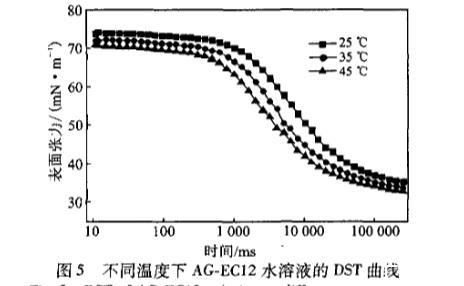 圖5不同溫度下AG—EC12水溶液的DST曲線