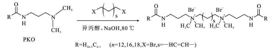 十二酰胺丙基二甲胺(PKO-12>95%)、十六酰胺丙基二甲胺(PKO-16,>98%)、硬脂酰胺丙基二甲胺(PKO-18,>98%)均為工業(yè)級(jí);反-1,4-二溴丁烯、乙醇、異丙醇、乙酸乙酯、氫氧化鈉(98%)均為分析純;二甲基亞砜(DMSO),購(gòu)自劍橋同位素實(shí)驗(yàn)室公司;蒸餾水。