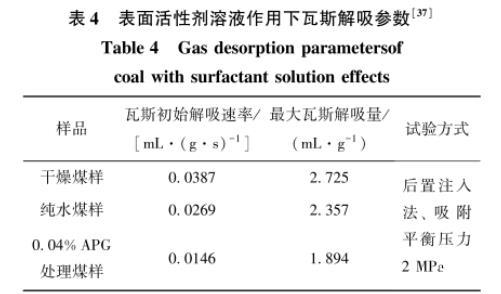 表4表面活性劑溶液作用下瓦斯解吸參數