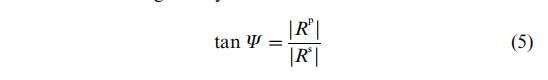 橢偏儀是一種研究表面和薄膜的技術(shù),其基礎(chǔ)是利用偏振光束從界面或薄膜反射或透射時(shí)發(fā)生的偏振變換。33在橢偏儀中,測(cè)量?jī)蓚€(gè)量J和D, 式中,J是角,其切線是全反射系數(shù)大小的比率,由下式給出: