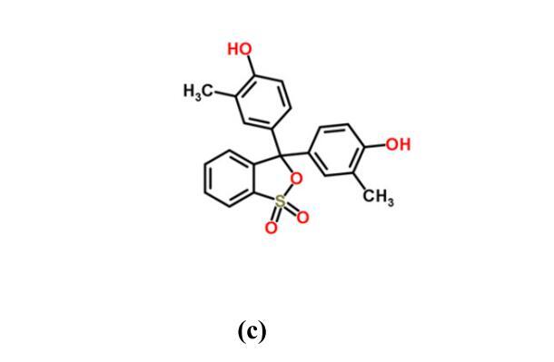 方案一.(a)1-癸基-3-甲基咪唑氯化銨(b)三甲基乙酰胺和(c)甲酚紅的分子結構。