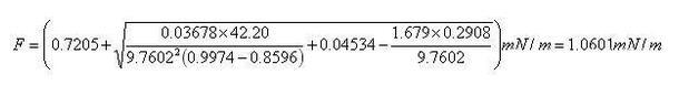 至水面上的油層大約10mm高。然后按和測(cè)水——空氣界面張力的步驟測(cè)水——油的界面張力。現(xiàn)舉一實(shí)例說(shuō)明界面張力計(jì)算方法。若顯示器讀數(shù)M為42.20mN/m,被試電子變壓器油25℃的密度ρ1為0.8596g/cm3,鉑環(huán)半徑rr為9.7602mm,鉑絲的半徑rw為0.2980mm,又已知25℃時(shí)純水的密度ρo為0.9974g/cm3,則利用式(1-2)求得
