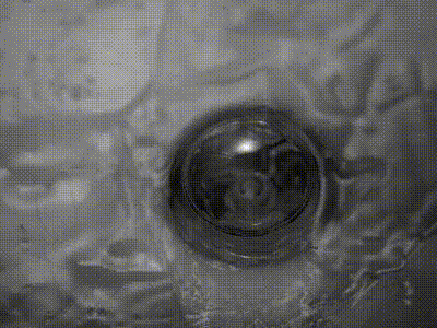 這時,他們在這些顛倒過來的硅油表面戳出氣泡。他們發現,這時氣泡坍塌的方式與此前正常的情況下完全一致:先是頂部的洞緩慢張開,而氣泡其余部分“下落”,相對快速地變成平坦的圓盤狀。但不要忘了,這時氣泡“落”回粘性液體時,與重力的方向恰好相反。也就是說,此前重力起主導作用的觀點并不成立。