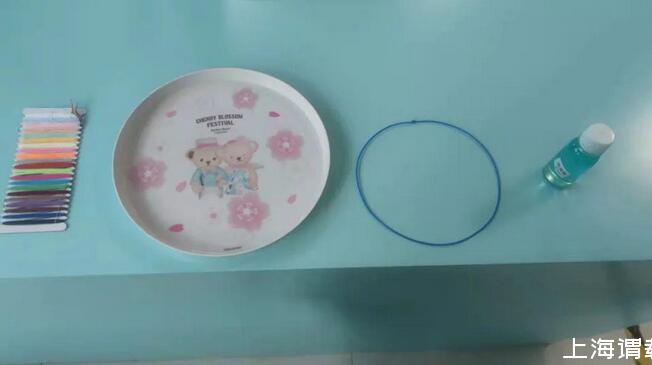 一、盤子中倒入泡泡水,塑料圈放入泡泡水中拿起,形成泡泡薄膜。