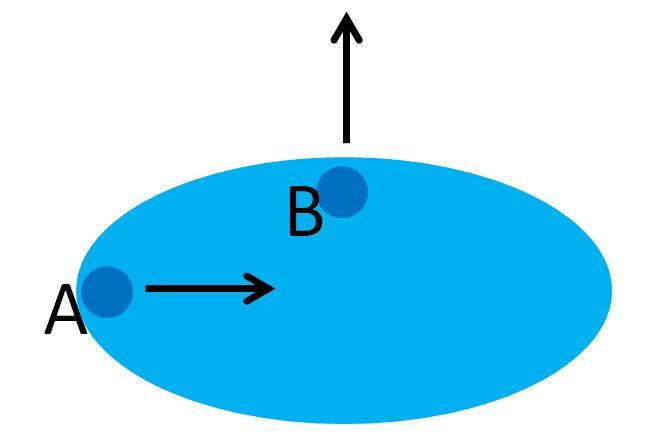 如下圖,為什么水分子A會向中心運動,而水分子B卻遠離中心?
