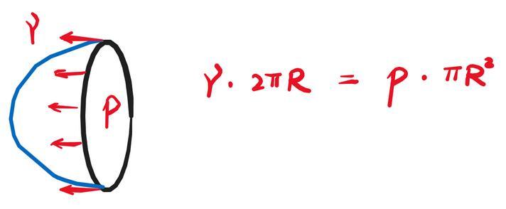 這就是標準的球曲面下,壓強與表面張力的關系。