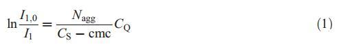 為了通過穩態熒光猝滅法評估膠束的平均聚集數(Nagg),使用芘作為熒光探針,選擇HPYC作為靜態猝滅劑[8]。該方法基于已知濃度的猝滅劑對發光探針的猝滅。通過使用以下等式[8]分析淬火實驗: