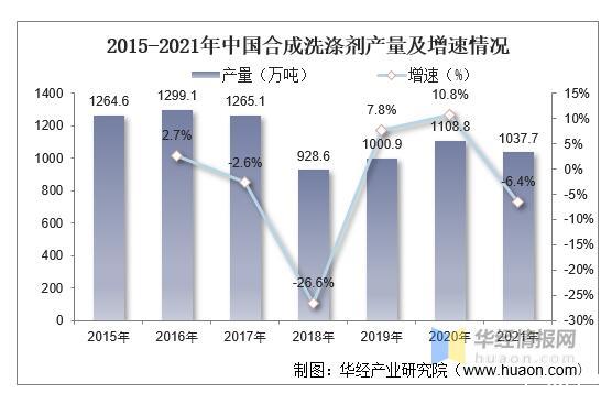 2015-2021年中國合成洗滌劑產(chǎn)量及增速情況