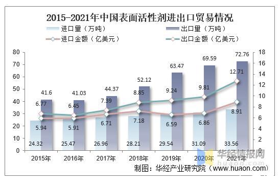 2015-2021年中國表面活性劑進(jìn)出口貿(mào)易情況