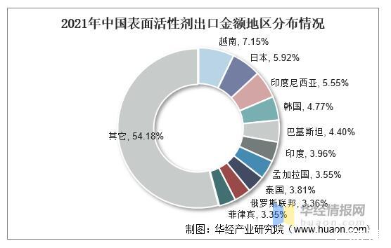 2021年中國表面活性劑出口金額地區(qū)分布情況