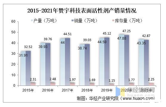 2015-2021年贊宇科技表面活性劑產(chǎn)銷量情況