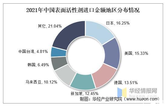 2021年中國表面活性劑進(jìn)口金額地區(qū)分布情況