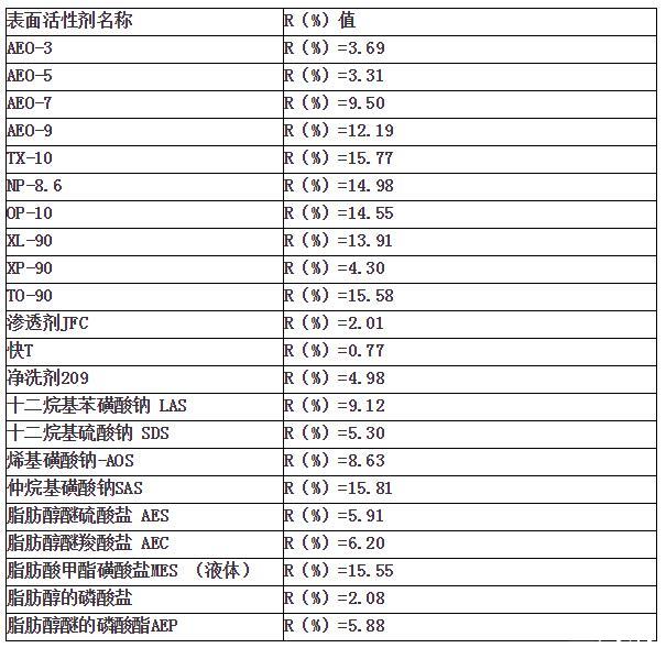 R值越大,表明凈洗能力越強,該測試標準可用來表征表面活性劑對一般污垢的去除,不適用于反映油脂和蠟質的去除能力。