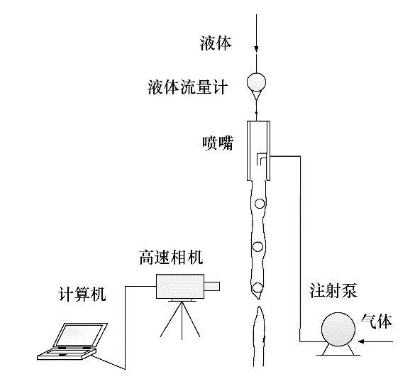 實(shí)驗(yàn)流程如圖1所示。來自注射泵的氣體通過充氣通道進(jìn)入噴嘴并在噴嘴內(nèi)形成氣泡,并與來自液體流量計的液體相混合形成氣液混合物。該氣液混合物離開噴嘴后,在不穩(wěn)定波的作用下發(fā)生破裂,使用高速相機(jī)記錄這一過程,并使用開源軟件ImageJ分析處理得到的圖片。實(shí)驗(yàn)通過控制注入噴嘴的氣體流量從而得到不同液體射流速度下直徑近似相等的氣泡。實(shí)驗(yàn)使用的噴嘴如圖2所示。其中,噴嘴內(nèi)徑d 0=2.96 mm,充氣通道外徑d 1=0.50 mm。