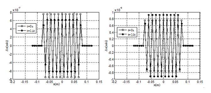 壓縮狀態(tài)下速度擾動振幅變化(左)和拉伸狀態(tài)下速度擾動振幅變化(右)