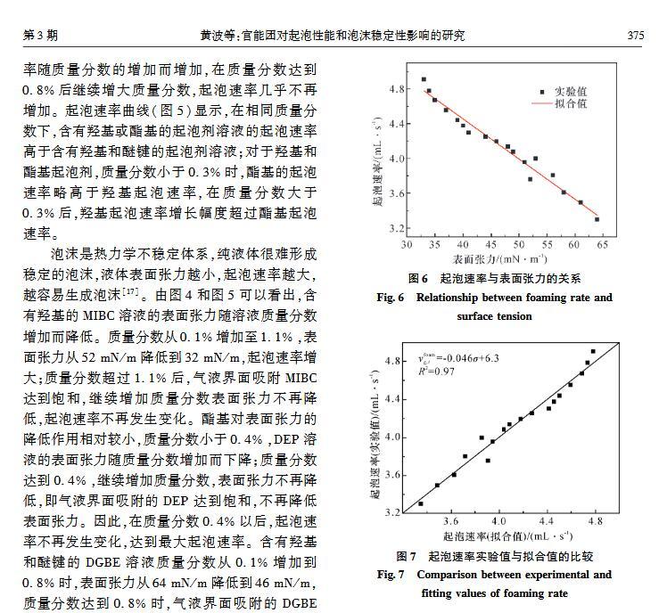 > 典型離子型與非離子型起泡劑的界面行為對泡沫性能的影響機制