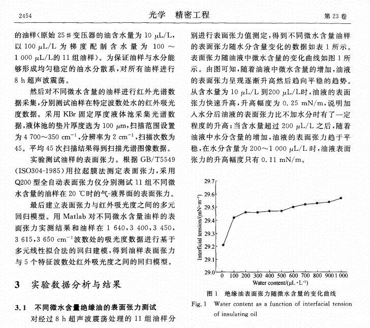 含微水絕緣油表面張力的中紅外光譜檢測(cè)
