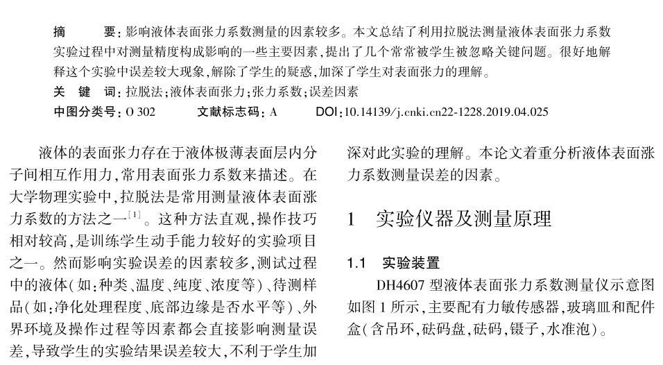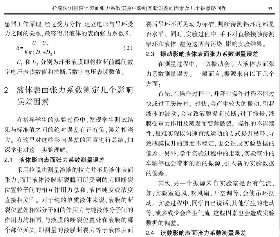 拉脫法測量液體表面張力系數的影響因素分析