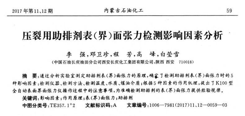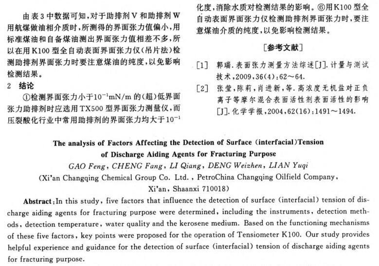 壓裂用助排劑表(界)面張力檢測影響因素分析